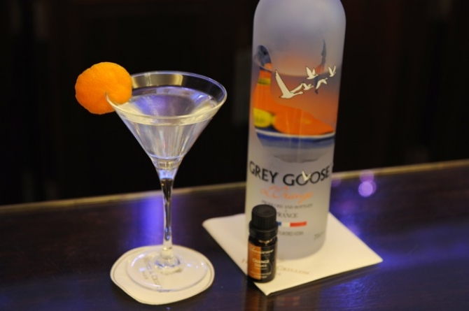 「フレイバードウォッカを使ったうえで、エッセンシャルオイルを加え、さらにオレンジピールをフランベしました」