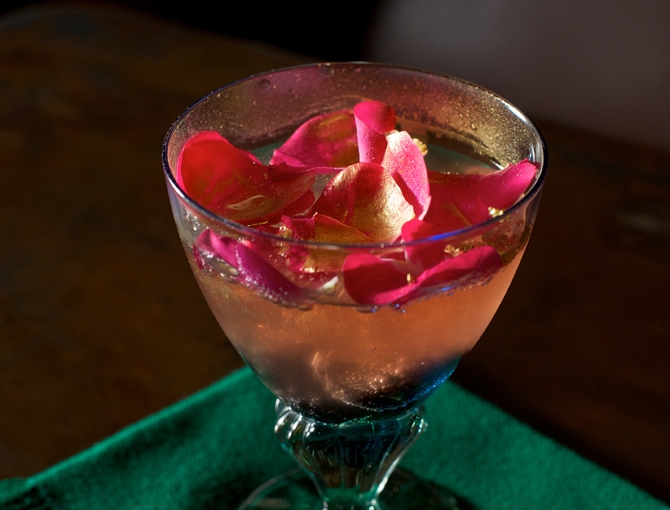 金粉はただの飾りではなく、カクテルの中で舞う、そのムーブメントも楽しんでほしい。