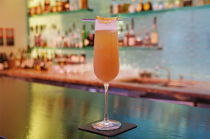 特製ピーチ・ソルベを使った、ビールベースのベリーニです。