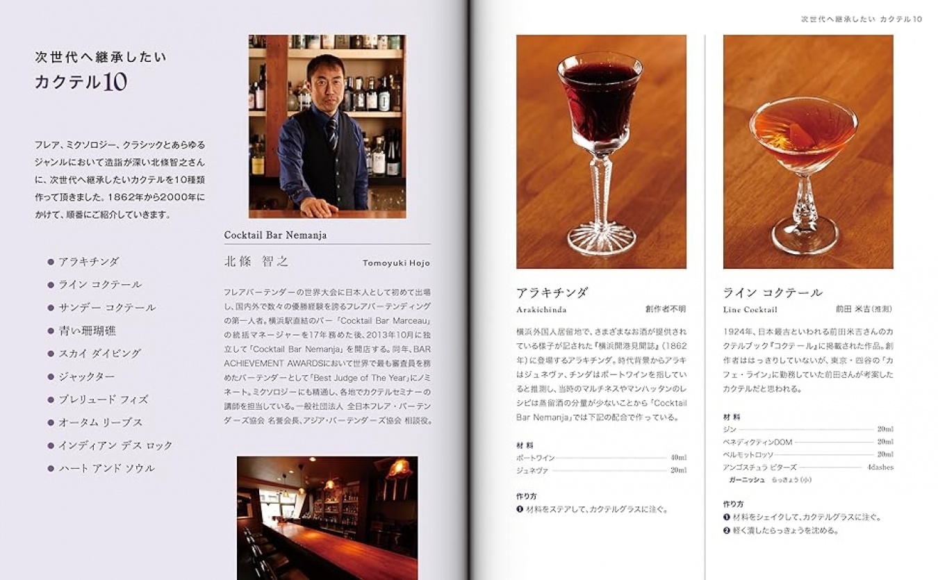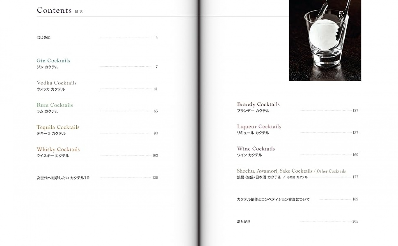 などなど、全国の著名なバーテンダー諸氏によるオリジナルカクテル全349作品のレシピを、ジン、ウォッカ、ラム、テキーラ、ウイスキー、ブランデー、リキュール、ワイン、焼酎・泡盛・日本酒・その他と、ベースごとに分けて掲載しています。
